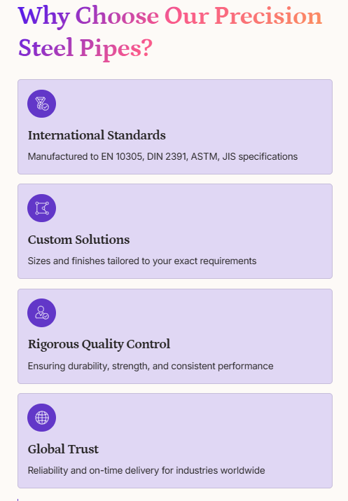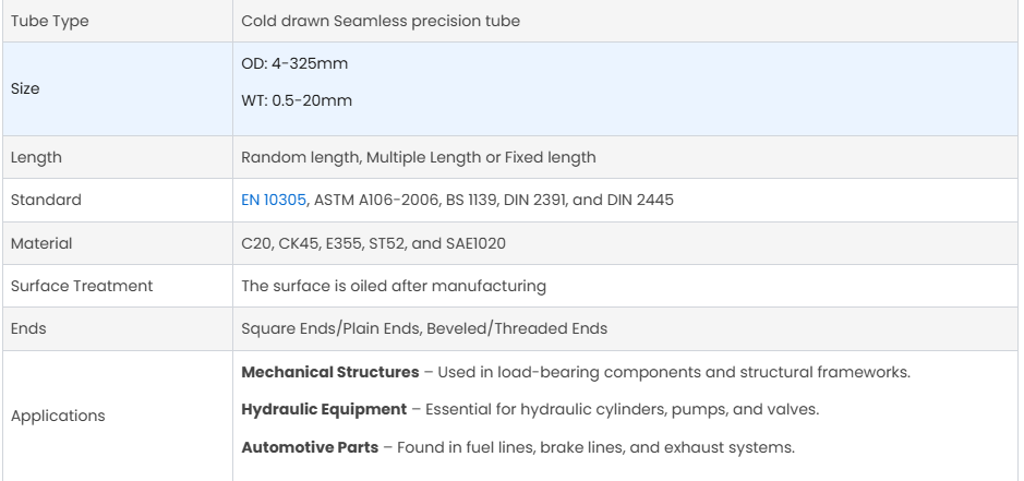 Precision refers to strict control of size. Key dimensions stay uniform across production batches, which ensures predictable assembly and reliable operation. The tube must behave consistently under pressure, vibration, and motion. This stability supports hydraulic cylinders, automotive parts, and mechanical components.